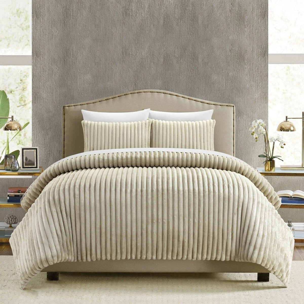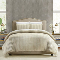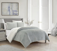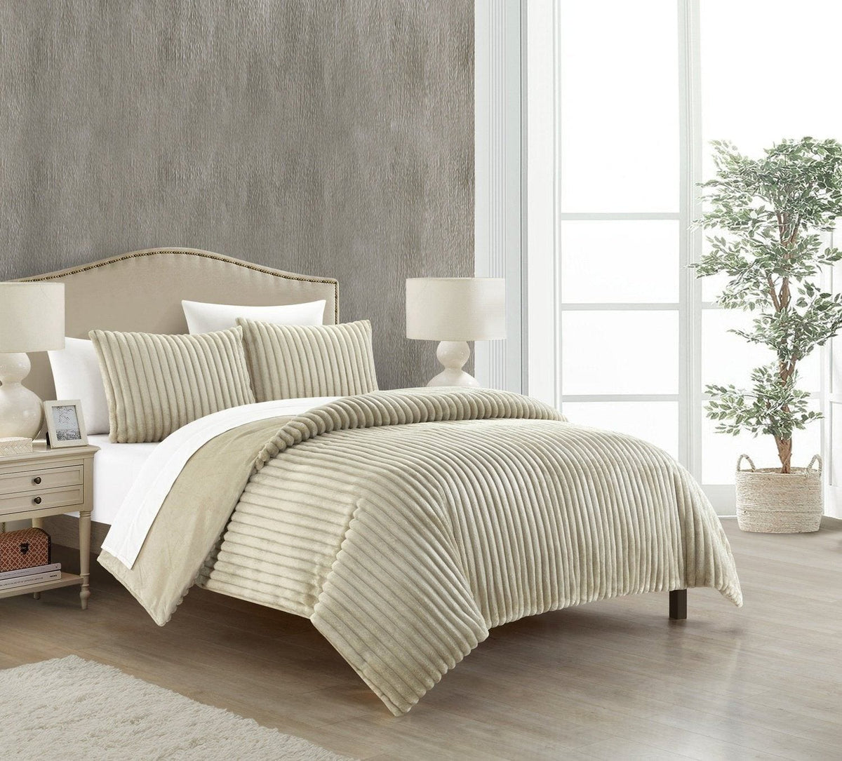 Classic meets luxury with the timeless Fargo comforter set from Chic Home. This set is designed to look great in any style bedroom and will provide the perfect setting for a good night sleep. The comforter features a channel quilted microplush faux fur face with a solid color micromink backing. Complete the look with the included design coordinated shams* or mix and match with your own for a distinct look.