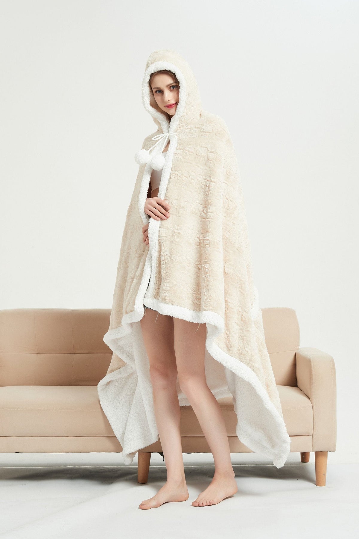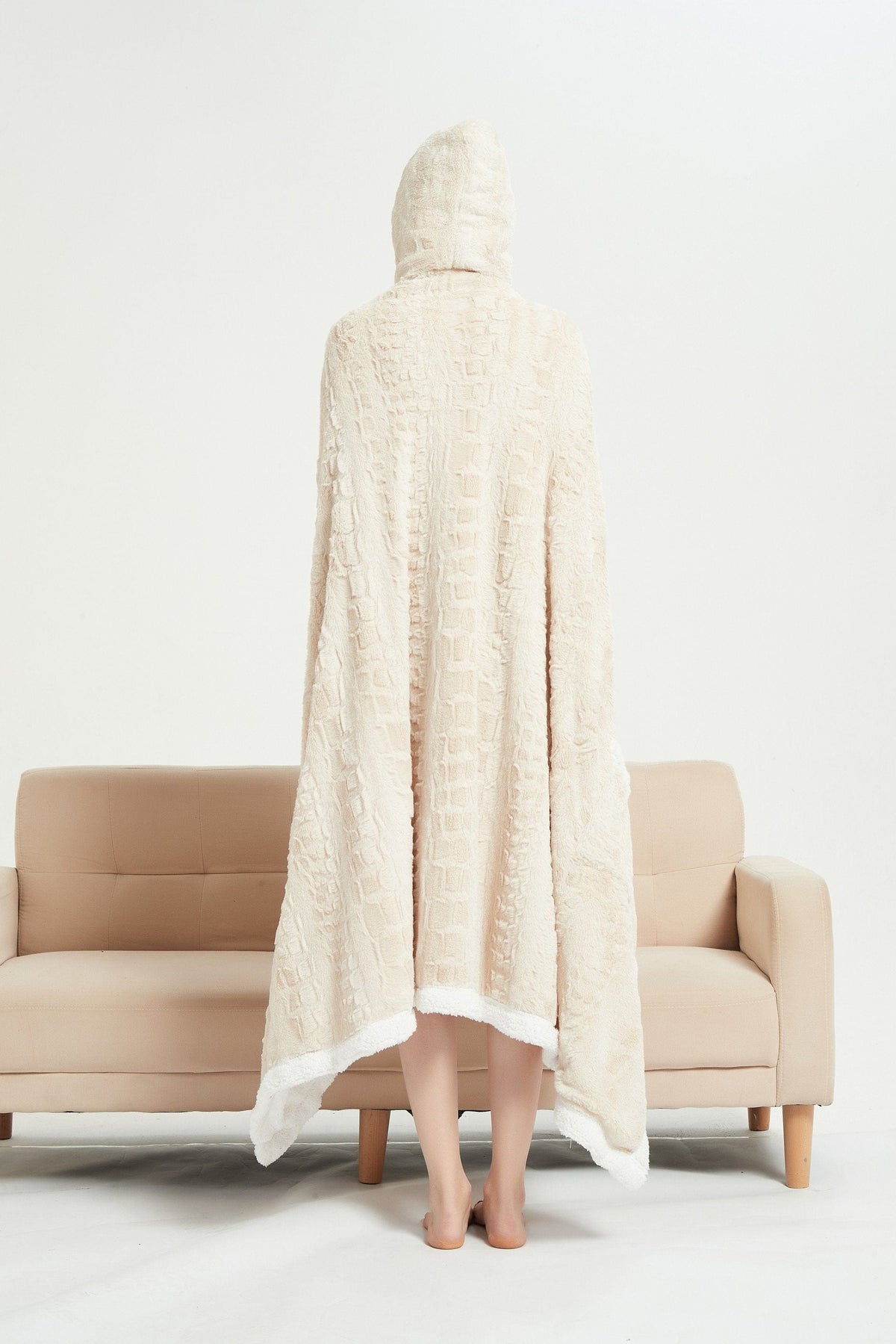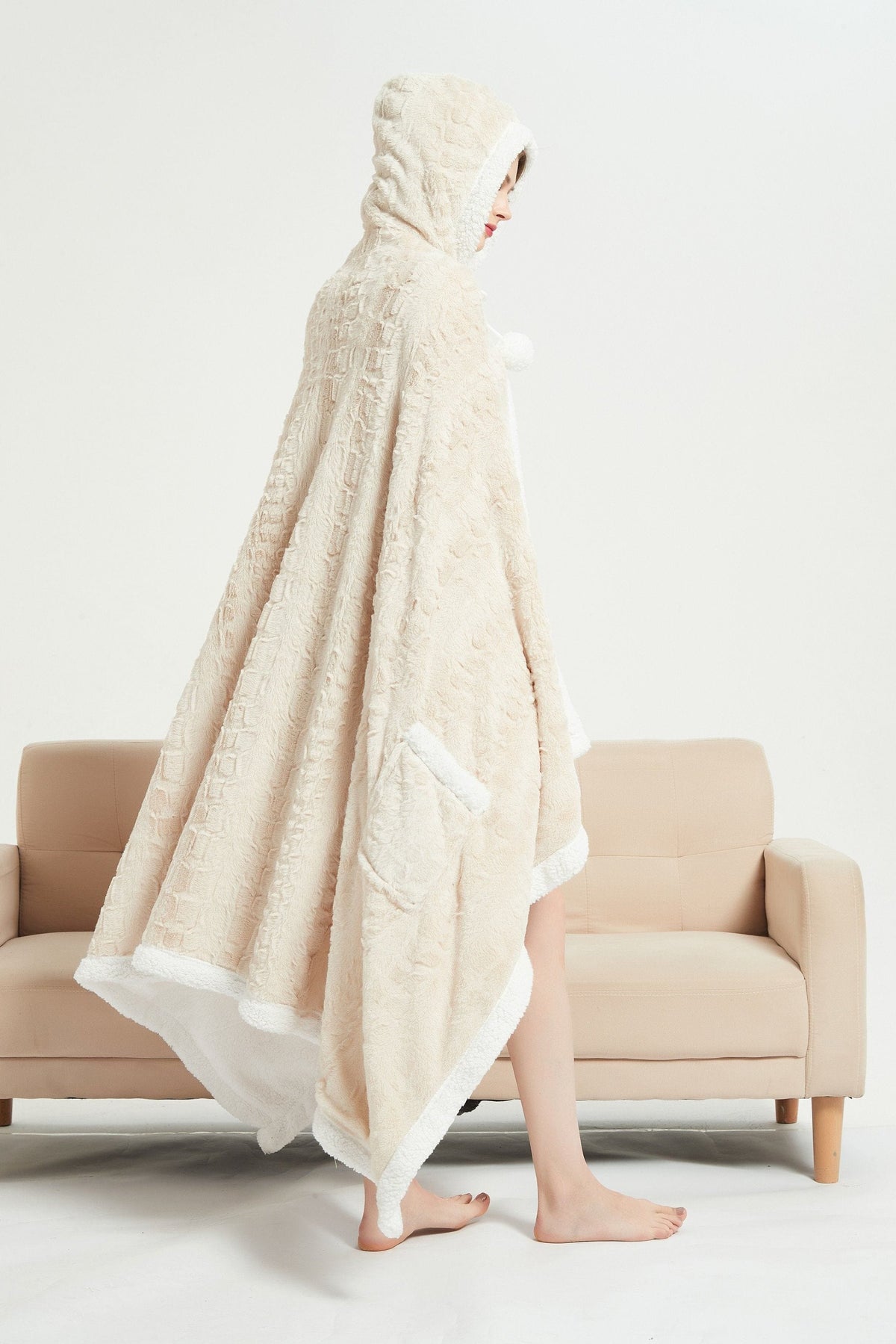 Ever wanted to wear your softest blanket? Well now you can with our innovative snuggle hoodie! Our ultra-plush micromink coral fleece and Sherpa lined animal print wearable blanket is designed to be worn like a robe. It even has a hood, 2 pockets and a pom-pom drawstring closure!