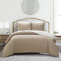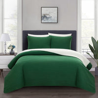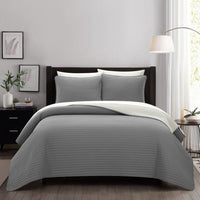 Give your bedroom a fresh, clean look with the contemporary St Paul quilt set from Chic Home. The quilt features a minimalist, striped solid color design on the face with a super soft faux fur backing on the reverse for the perfect blend of style and comfort. Two design coordinated pillow shams complete the look.