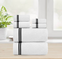 Striped Hem Turkish Cotton 6 Piece Towel Set