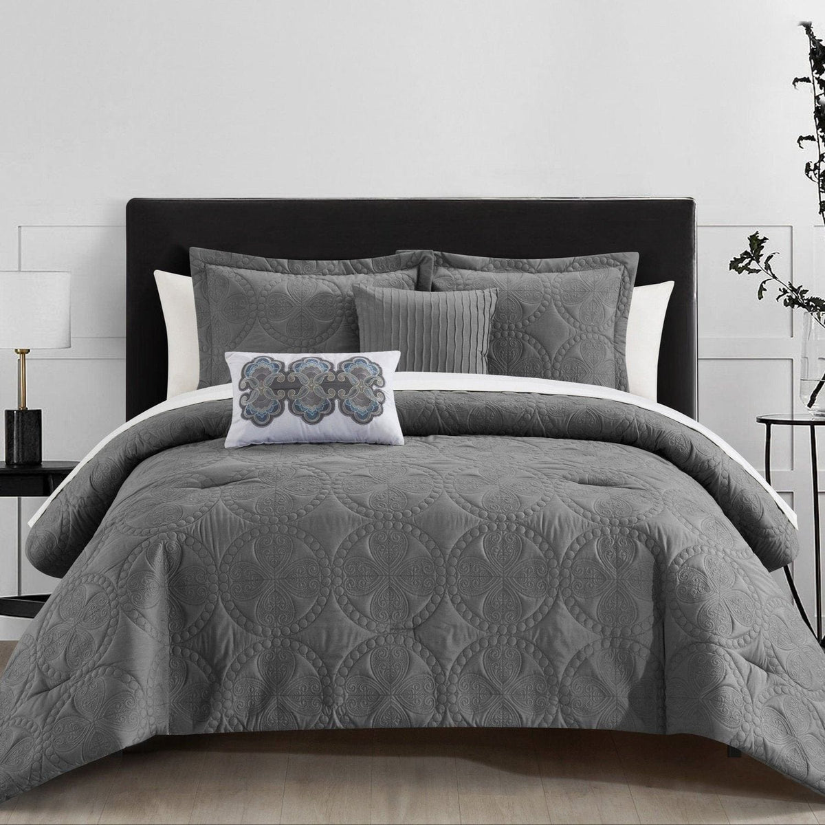 Soft as silk, the Adaline comforter from Chic Home is made with one goal in mind, giving you a luxurious sleep experience. Enhanced with embroidered geometric mandala designs and available in neutral tones, this bedding set is beautifully bohemian, charmingly romantic and chic as can be. Design coordinated pillow shams and two decorative pillows complete the look. A four piece sheet set (1 fitted sheet, 1 flat sheet and 2 pillowcases) is included with every set.