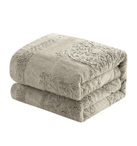 Retire every night on a bed of luxury and unmatched comfort with the Amara Comforter from Chic Home. Made with a faux fur outer lining and a micro mink backing, this comforter features an intricately embossed pattern of ornate mandalas and geometric streaks. Cozy and warm yet light and breathable, this comforter is a winter favorite that you’ll love snuggling in during those frigid snowy evenings. Complete the look with the included design coordinated pillow shams* or experiment with contrasting colored shams for an unconventional look.