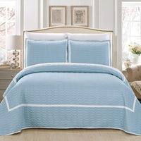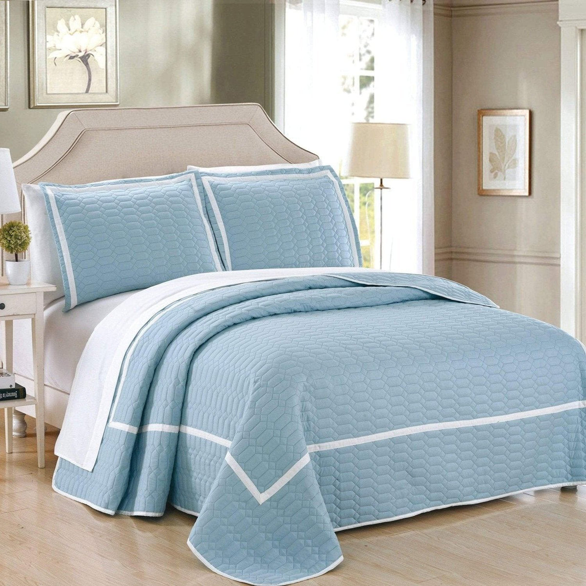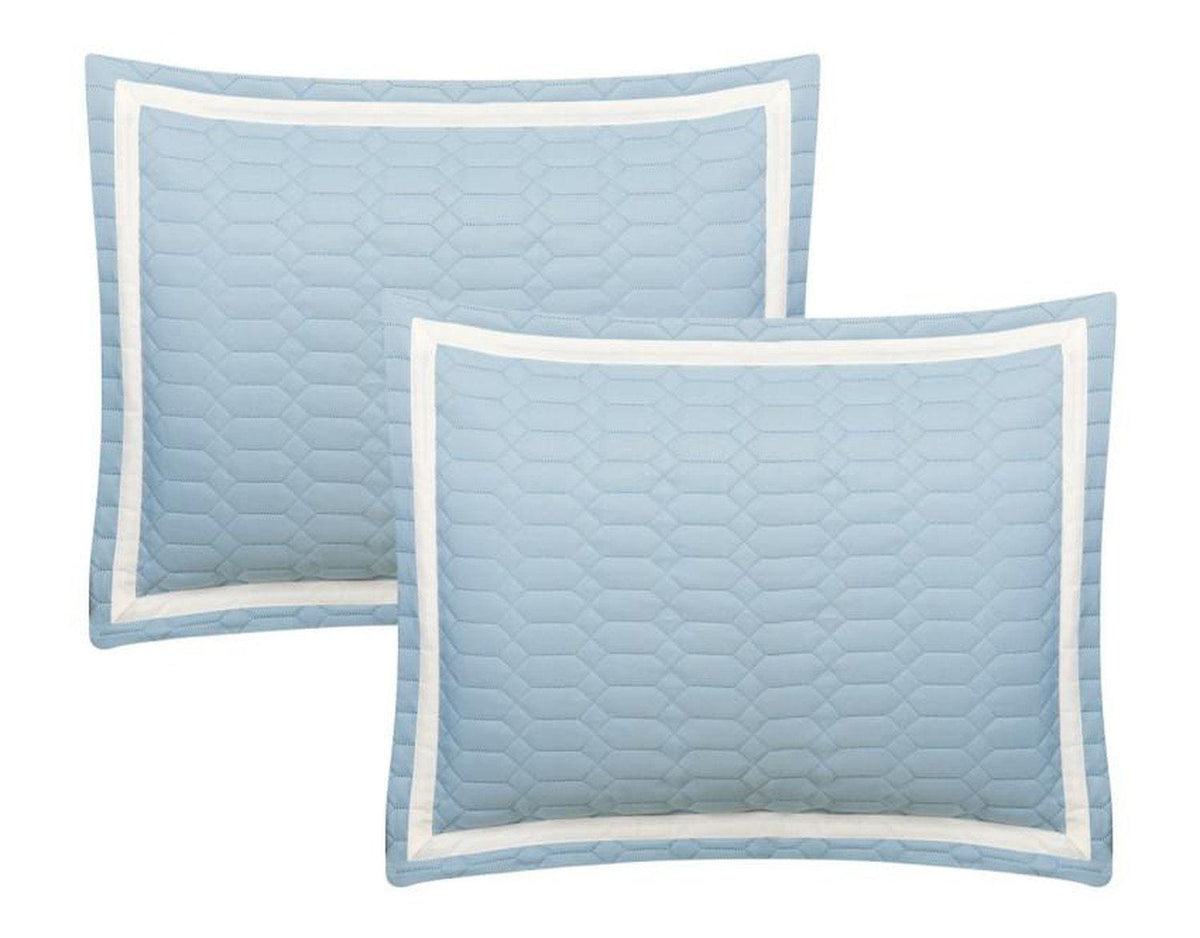 A fashion forward quilt cover set with everything you need for a complete bedroom décor makeover. Simple yet elegant two tone banded hotel collection with quilted geometrical embroidery. Sheet set and design coordinated shams are included to complete the look.