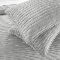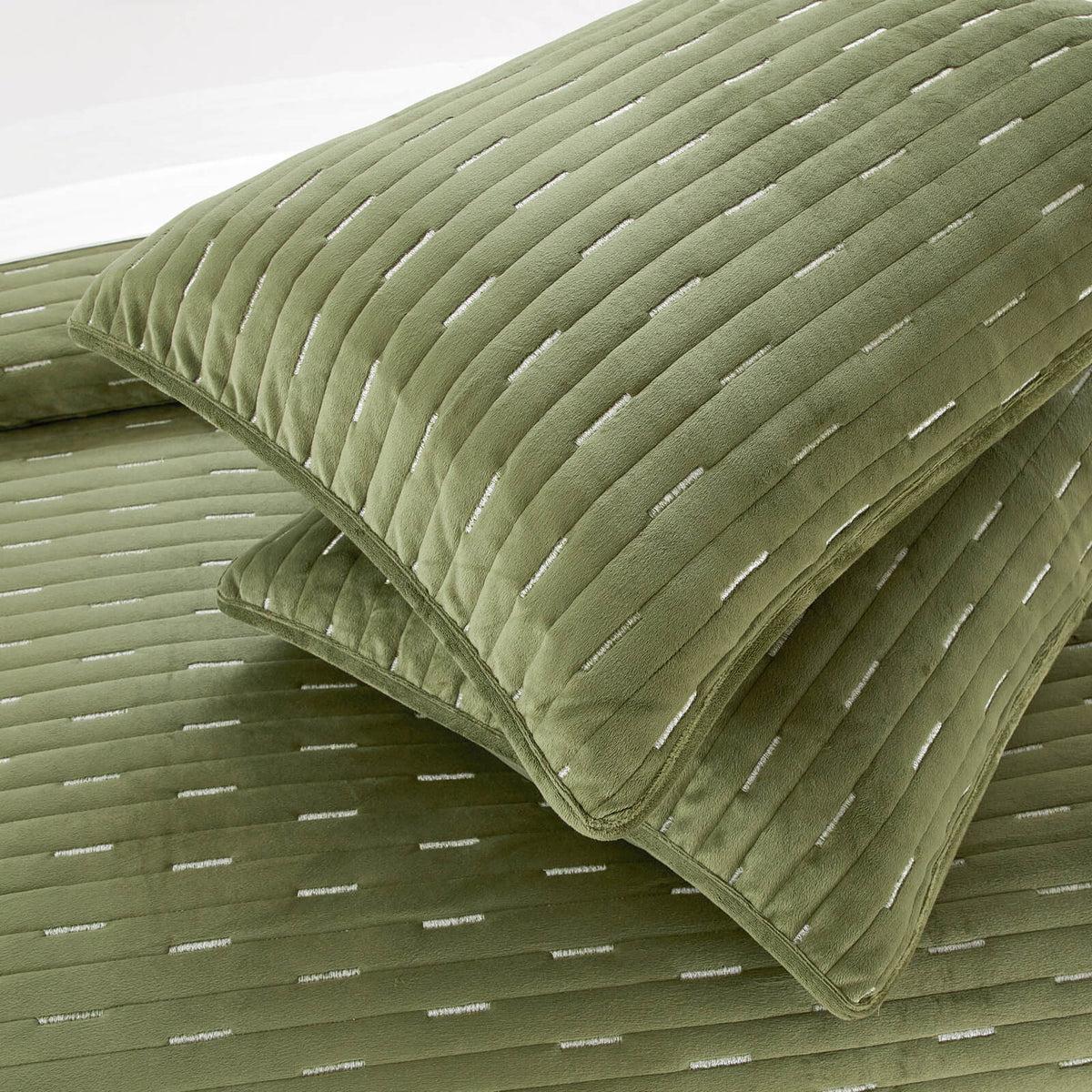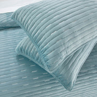 Dive into luxury with the Castiel velvet quilt set from Chic Home. Crafted from the finest sumptuous velvet, this coverlet is an epitome of elegance, highlighted by its intricate striped, stitched embroidery. Beyond its visual splendor, the rich texture of the velvet ensures an unparalleled tactile experience, making every night a lavish retreat. Accompanied by two matching pillow shams, this bedspread effortlessly elevates any bedroom's ambiance to a realm of sophistication and comfort. A four piece white sheet set (1 fitted sheet, 1 flat sheet and 2 pillowcases) is included with every set.