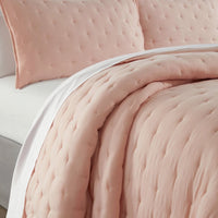 Give your bedroom a fresh, clean look with the laid back style of the Chyle quilt set from Chic Home. This quilt features a tufted cross stitched design on the face. Two design coordinated pillow shams complete the look.
