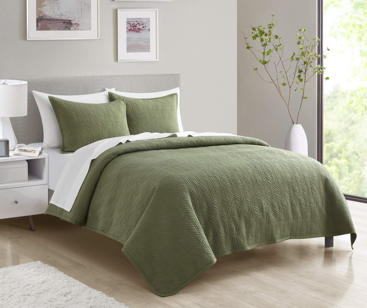 • Delicately stitched with a geometric pattern, creating a sense of tranquil, modern elegance