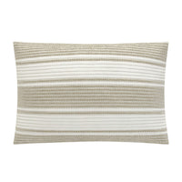 • Sophisticated striped pattern paired with neutral beige and taupe tones