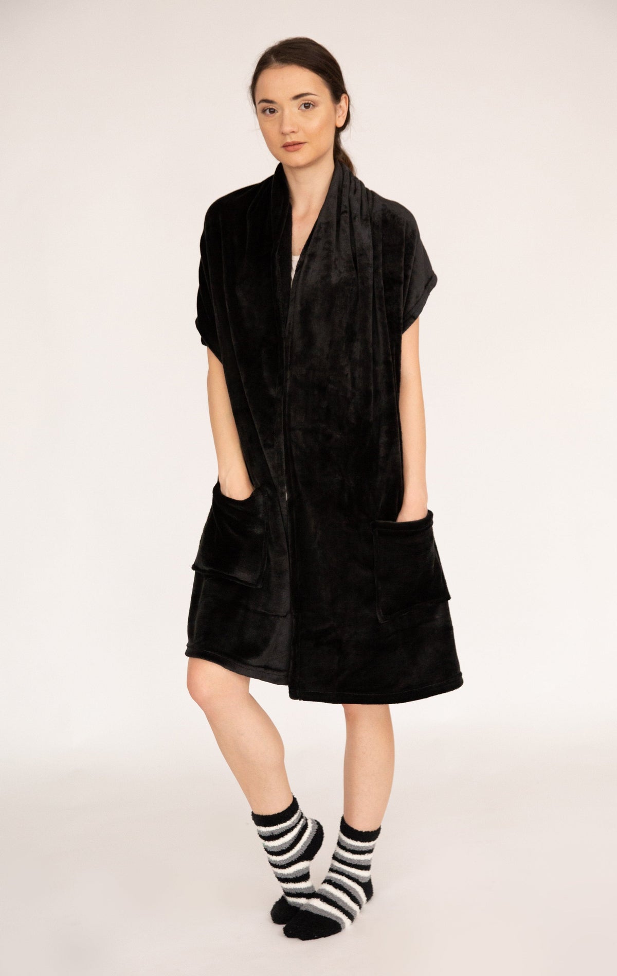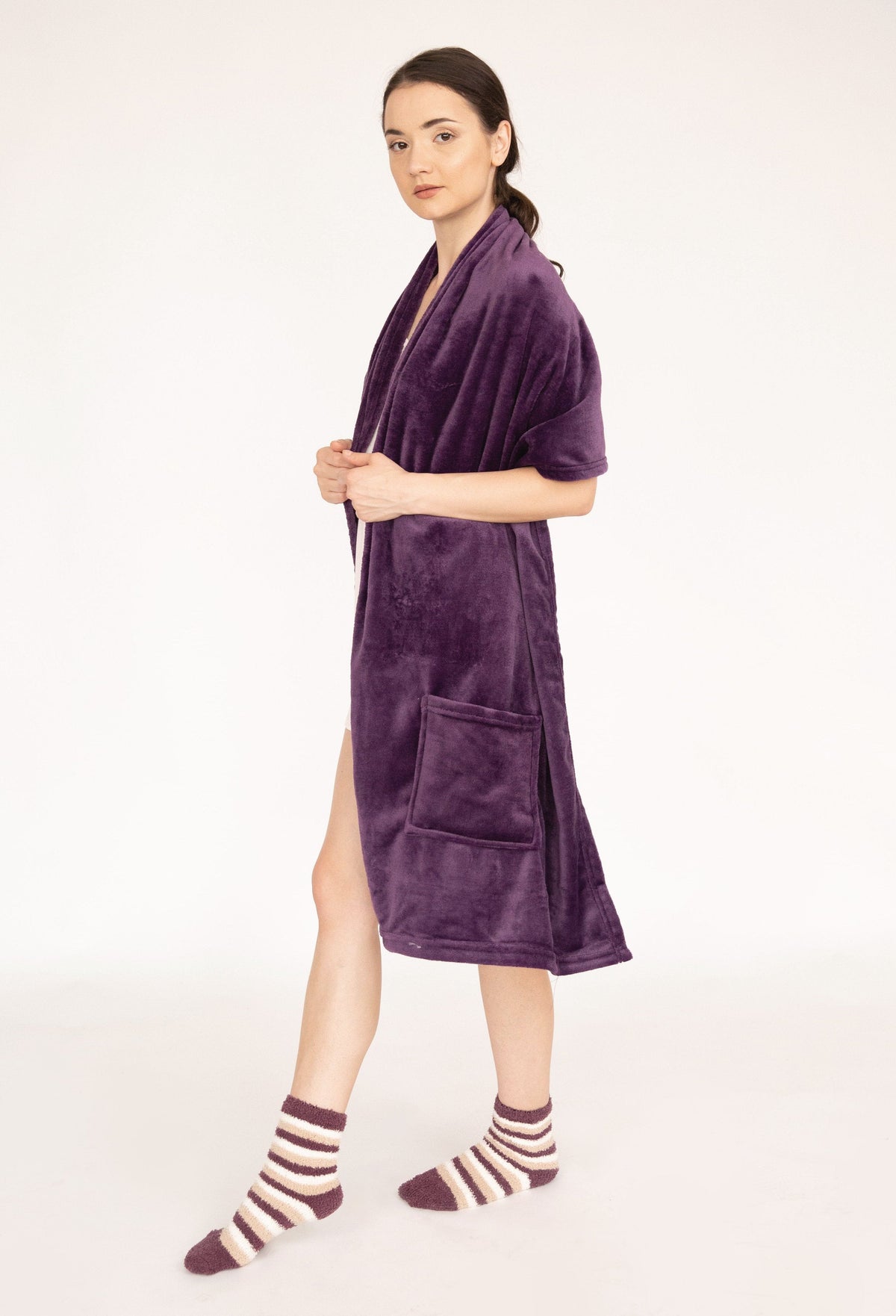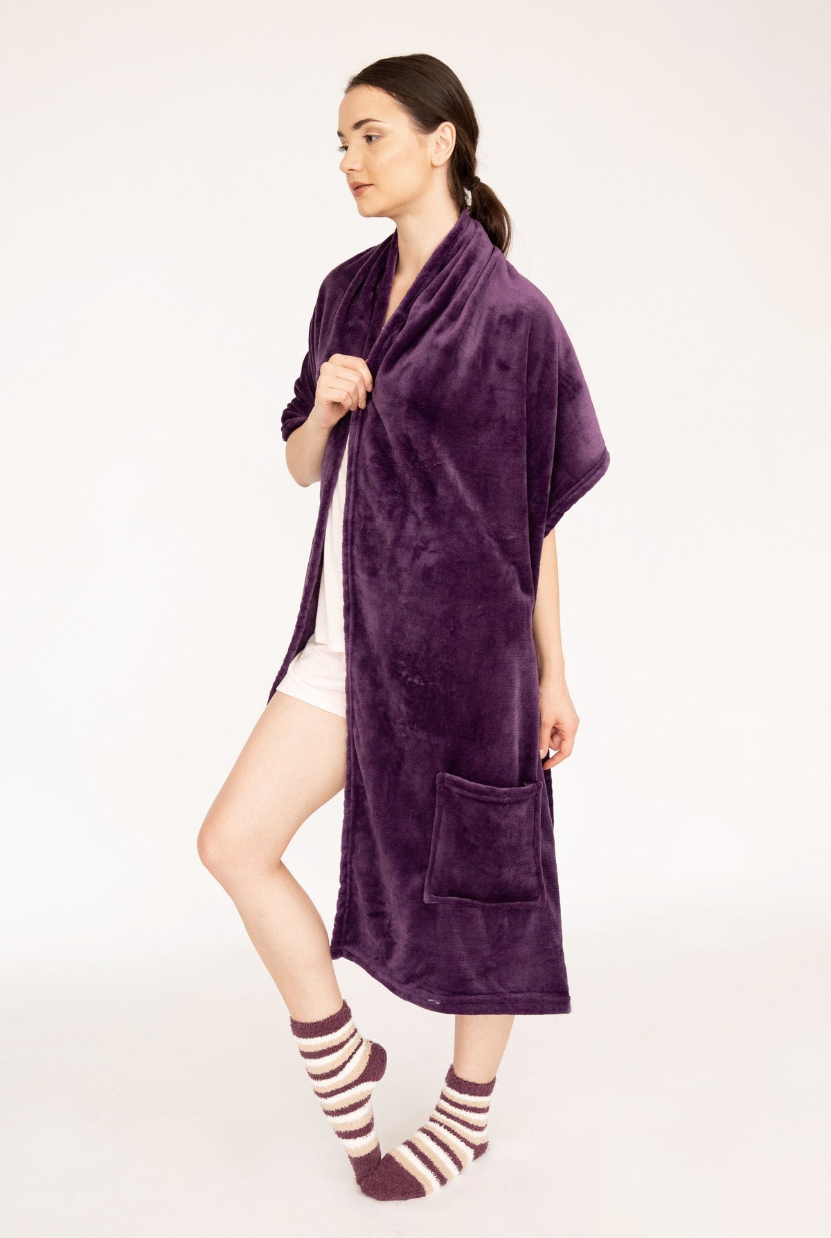 Ever wanted to swaddle yourself and feel all warm and cozy? Well now you can with our one of our luxurious wraps! Our super soft, ultra plush flannel fleece wraps with pockets are designed to be worn like a robe and let you look your best while feeling your best. We even throw in a pair of plush striped socks to keep you warm from head to toe!
