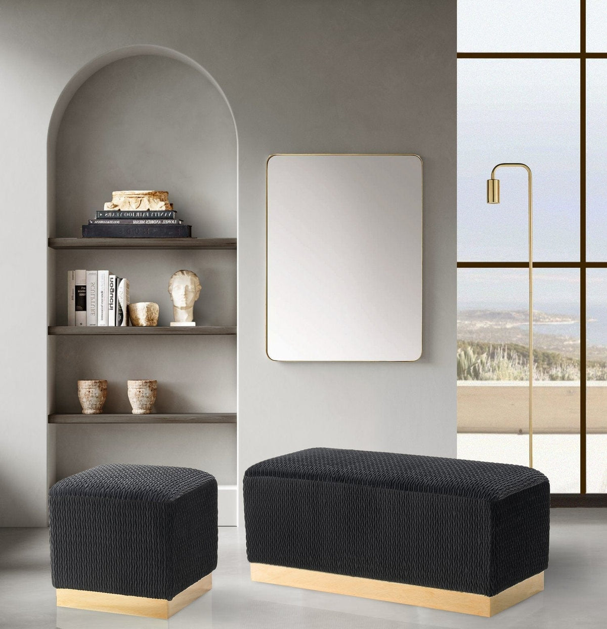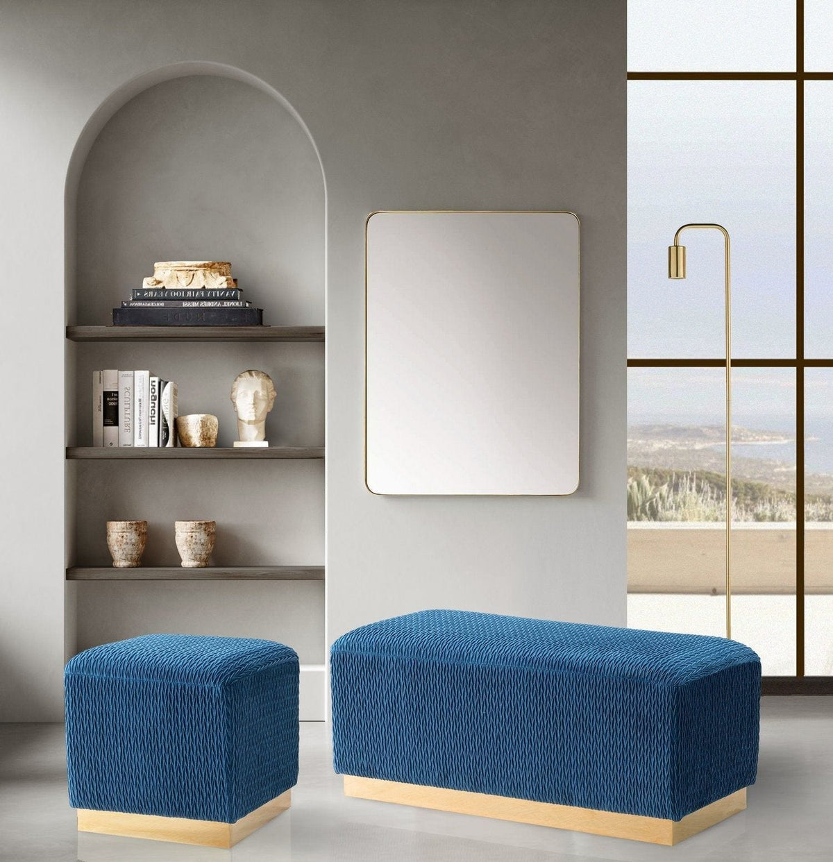 From a comfy seating option to a charming focal point, the Beatrix Bench from Iconic Home is a versatile piece of furniture that plays multiple roles in your home. This clean-lined and rectangular bench is our contemporary take on a classic design and is sure to strike up conversations every time you have guests over. The combination of decadent, textured velvet and the smooth, gold base makes this bench an unforgettably gorgeous addition to your decor.