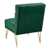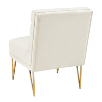 Give your living space a bold, fresh look with the sumptuous and stylish Cali accent chair from Chic Home. A head turner, the Cali slipper chair features a horizontal channel tufted back, architectural gold tone metal legs, and luxe velvet upholstery. Place two together to create a conversation area or use a standalone piece to create a focal point. Lends itself to living room, lounge, den and office spaces with modern and contemporary design styles.