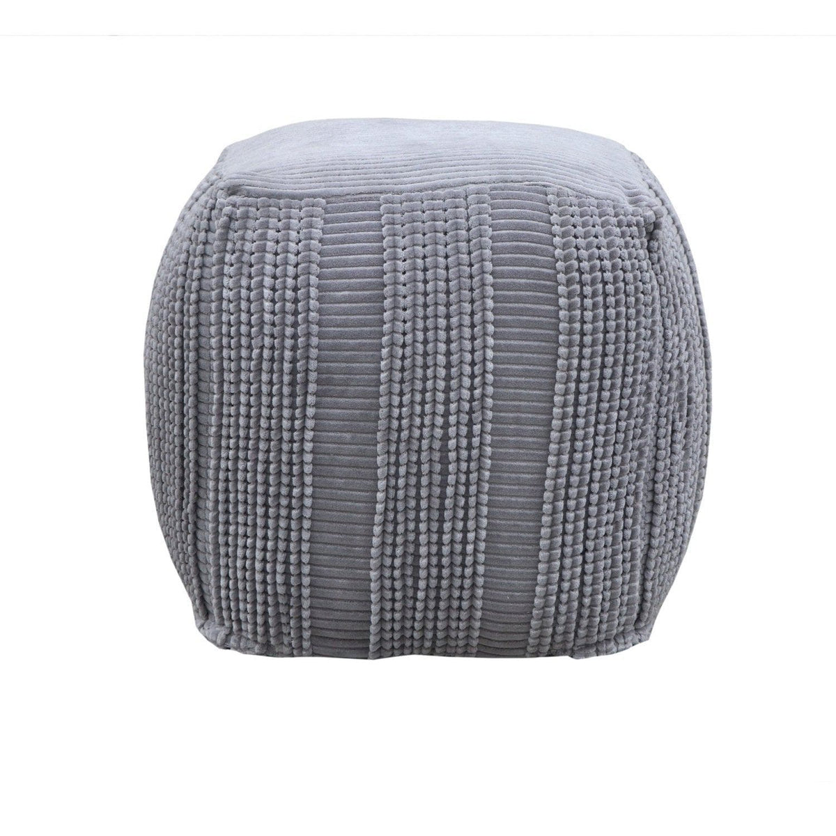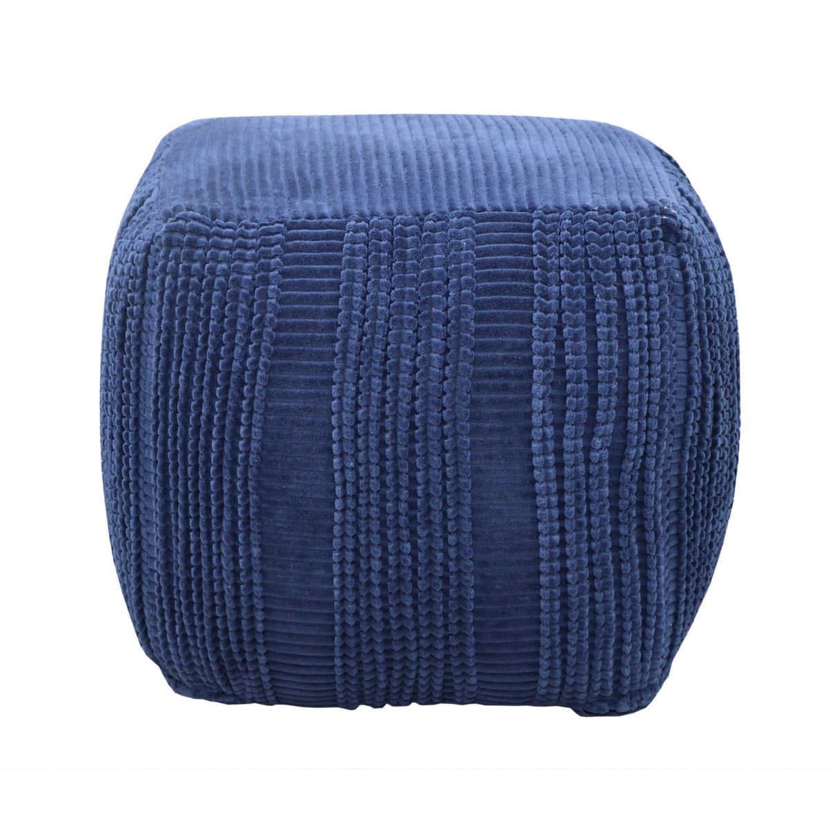 The Dinesh square pouf ottoman doubles as extra seating and functional decor for virtually any environment. A beautiful blend of both contemporary and traditional design elements, this piece is upholstered in cotton and features a striped design with woven vertical bands. Use the Dinesh in multiples to add a touch of timeless elegance to any room in your house.