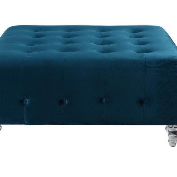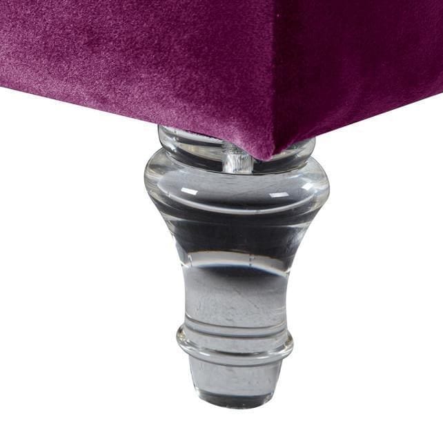 The Sampson coffee table ottoman doubles as extra seating and functional décor for virtually any environment. Softened contemporary design features chic, tufted velvet fabric with stylish, carved acrylic legs. In an instant, Samson adds a touch of timeless elegance to your room.