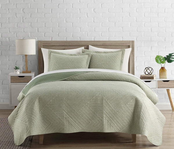 Jessie 3 Piece Geometric Crinkle Quilt Set