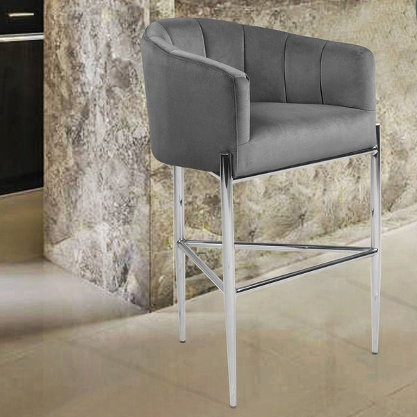 Cyrene Velvet Bar Stool Chair Chrome Base